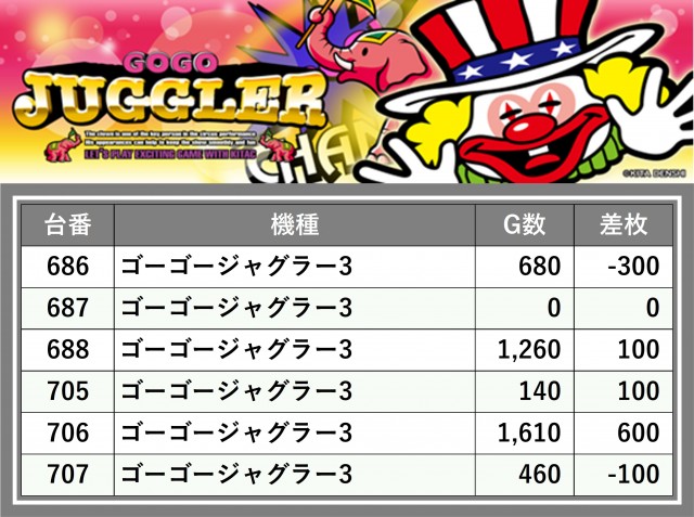 ※台番順に掲載しています