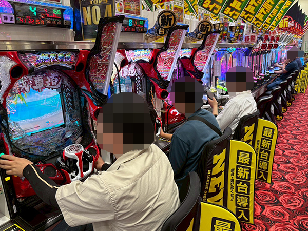 店内では貸し玉料金を問わず様々な機種で、心ゆくまで楽しむプレイヤーの姿が見られた。