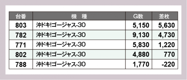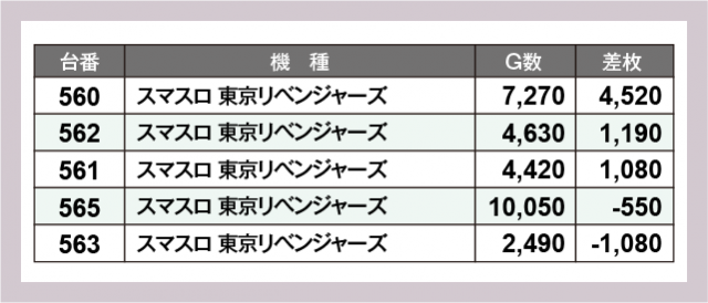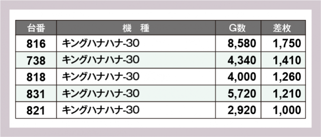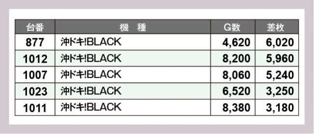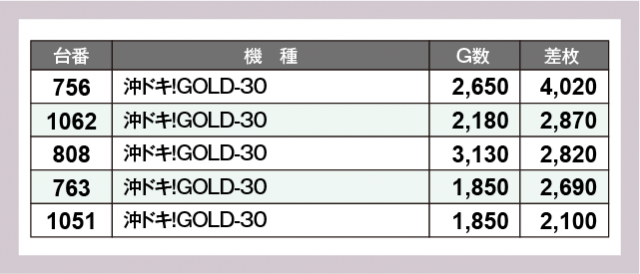 ※差枚数順に掲載しています