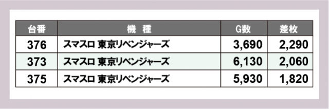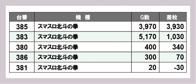 ※差枚数順に掲載しています
