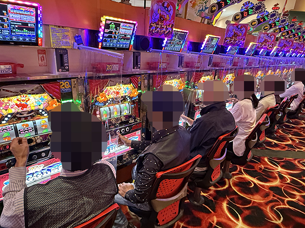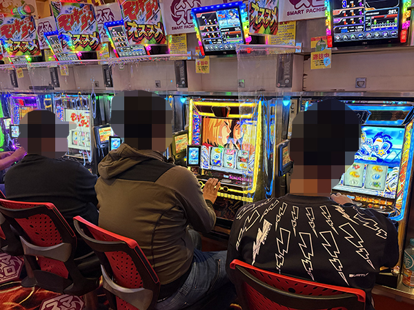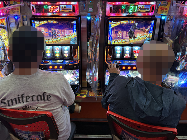 1000円/180枚パチスロの支持も厚く、様々な機種で楽しそうにレバーを叩くプレイヤーが見られた。
