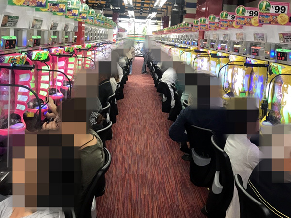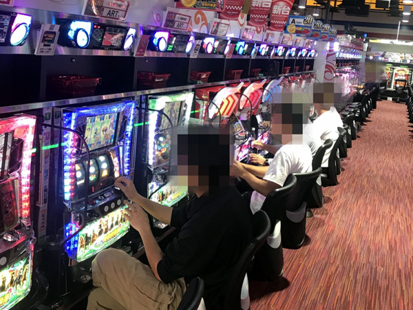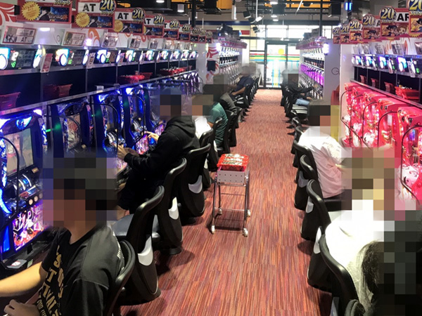ほかに、「バジリスク~甲賀忍法帖~絆」や「押忍!番長3」などの定番機種も盛況となっていた。シマ全体に広がる華やかな光景が満足度の高さをあらわしているようであった。