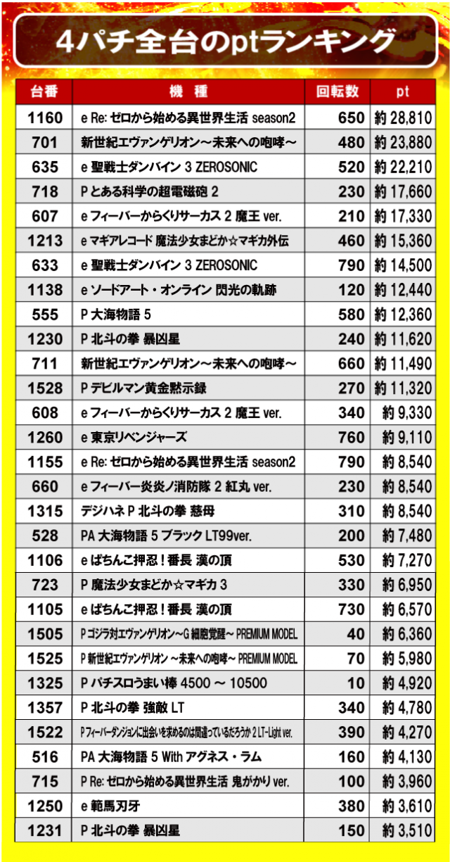 ②4パチ全台のptランキング