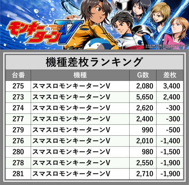 ※差枚数順に掲載しています