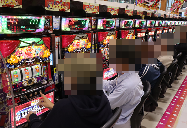 「マイジャグラーⅤ」や「ネオアイムジャグラーEX」なども空き台は少なく、盛り上がりが大きい。
