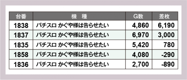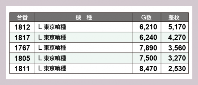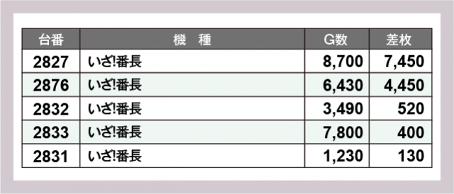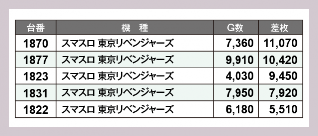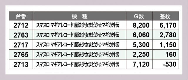 ※差枚数順に掲載しています