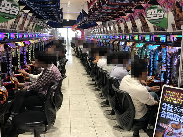 パチンコ・パチスロ共に多くのプレイヤーでにぎわい、明るい楽しげな雰囲気が感じられた。