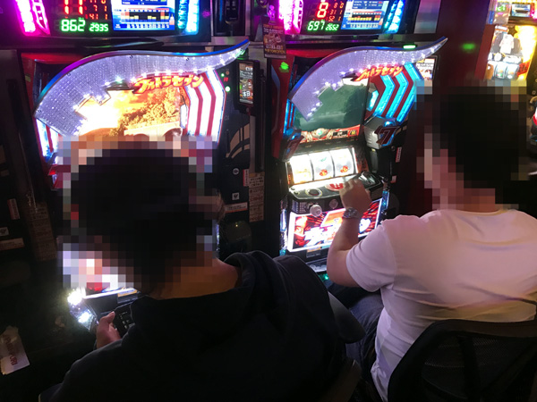 新台の「盗忍!剛衛門」や「ぱちスロ ウルトラセブン」も満席という状況。機種の魅力を味わっているプレイヤーでにぎわっていた。