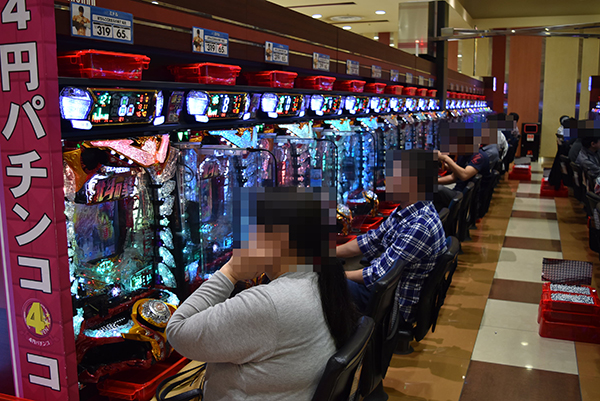 午後の4円パチンコでは、「CR牙狼GOLDSTORM翔」の活躍がひと際目立つ。空き台が出るとまたすぐに埋まるなど、常に高い注目度を誇っており、ポテンシャルを発揮できているといったプレイヤーも多かった。