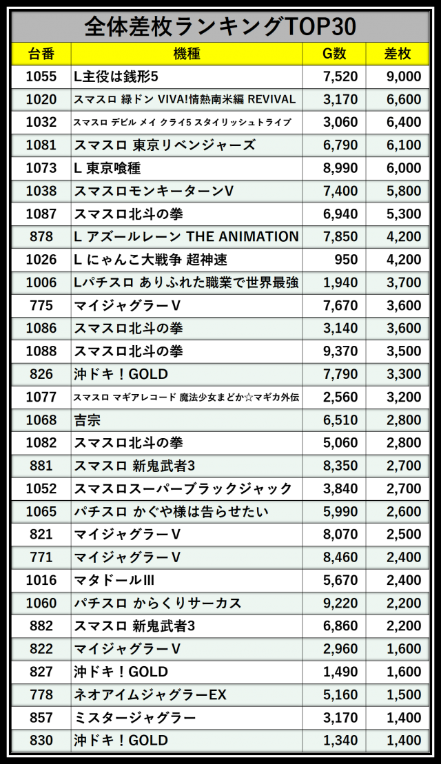 その結果の中から、ぱちタウンが注目すべきポイントを厳選してユーザーにお届け!プレイヤーが楽しんだ一日を下記データにて振り返ってみて欲しい。