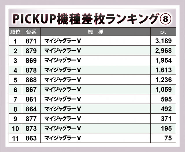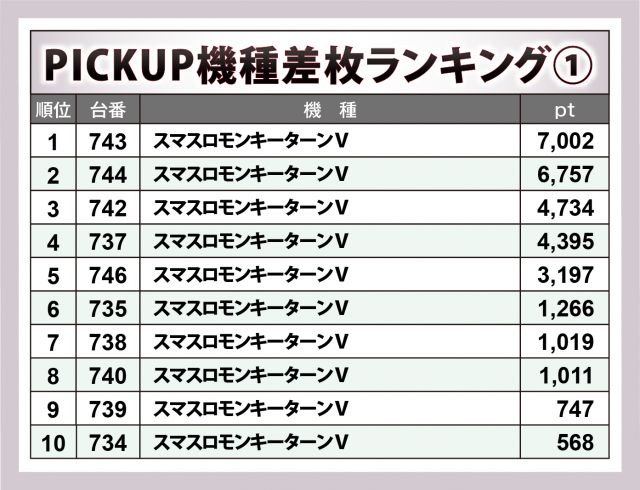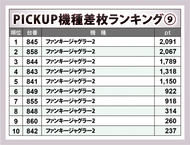 以下、当日の出玉データを丹念に見つめ優秀台を深掘りしていく。