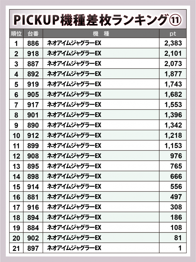 ここからは合計pt数の多かった機種を上から並べていこう。