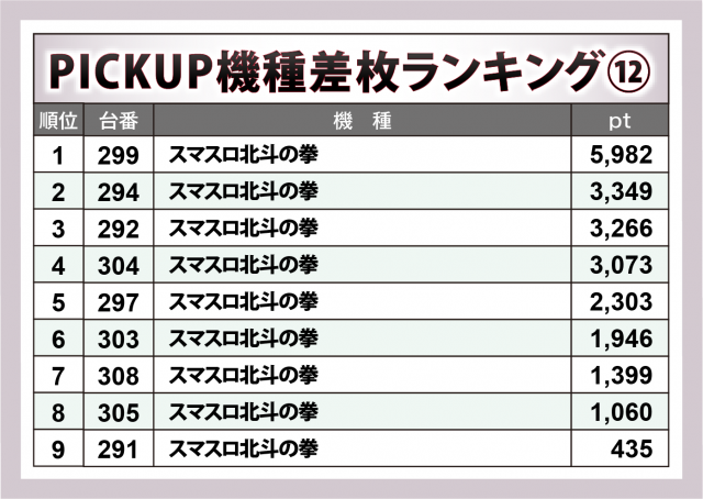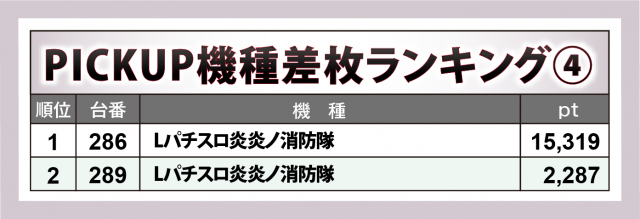 加えて、『L麻雀物語』718番台が+8千2百超、『スマスロ デビル メイ クライ5 スタイリッシュトライブ』693番台が+7千7百弱&692番台が+5千6百弱、『L ダーリン・イン・ザ・フランキス』771番台が+6千8百弱、『いざ!番長』1041番台が+6千弱、『押忍!番長4』1034番台が+5千8百弱、 『Lパチスロ ダンベル何キロ持てる?』699番台が+5千7百超と、幅広いラインナップが好出玉を残した。