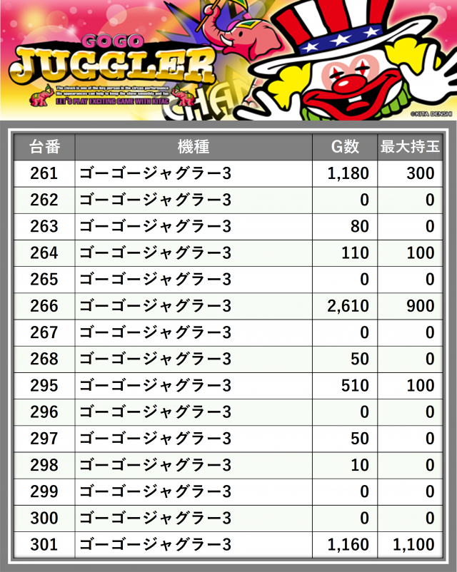 厳選された取材対象機種をはじめ、その他スロット全体から好記録が飛び出した!プレイヤーが楽しんだ1日を下記データにて振り返ってみて欲しい。