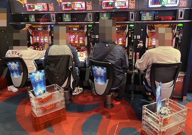 多くのプレイヤーが1箱以上の持ち玉を使い、うれしそうに遊技をおこなっていた。