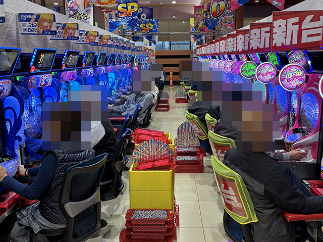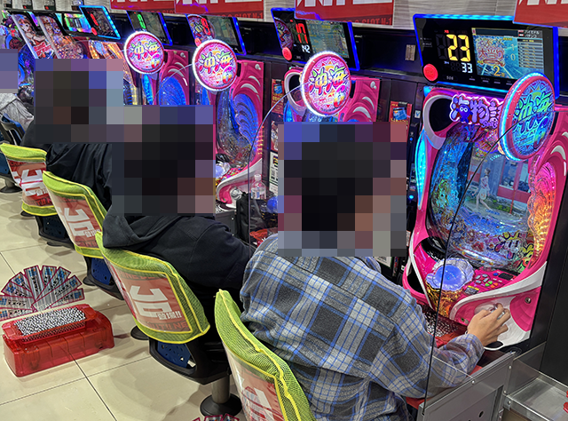 「Pスーパー海物語IN沖縄6」で遊技をおこなっているプレイヤーも多く、シマ内は華やかな雰囲気に包まれていた。