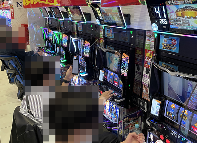 「L 東京喰種」や「パチスロ かぐや様は告らせたい」なども人気があり、うれしそうに遊技をおこなっている姿が並んでいた。