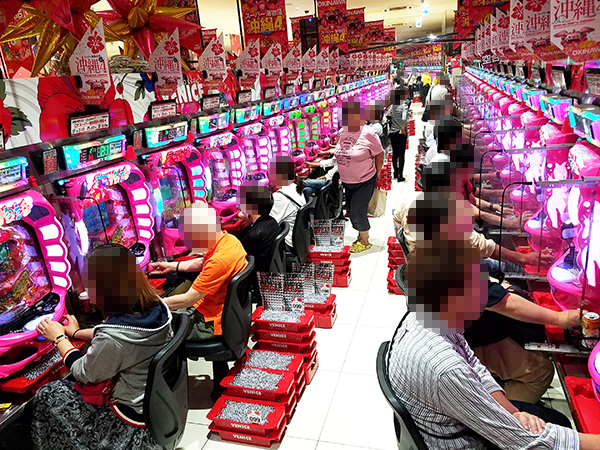 14時ごろに4円パチンコを見て回ると、設置台数94台を誇る「ぱちんこCR真・北斗無双」や「CRスーパー海物語IN沖縄4」などが大盛況。機種のポテンシャルを存分に発揮したプレイヤーが続出し、シマ全体から活気が感じられた。