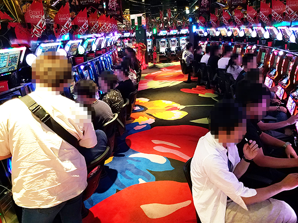 また「パチスロ北斗の拳 新伝説創造」も活況な様子。機種の魅力を堪能しているプレイヤーが多数目撃され、楽しそうな表情をそこかしこで見ている。