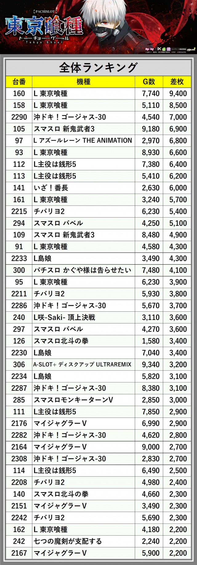 厳選された取材対象機種をはじめ、その他スロット全体から好記録が飛び出した!プレイヤーが楽しんだ1日を下記データにて振り返ってみて欲しい。