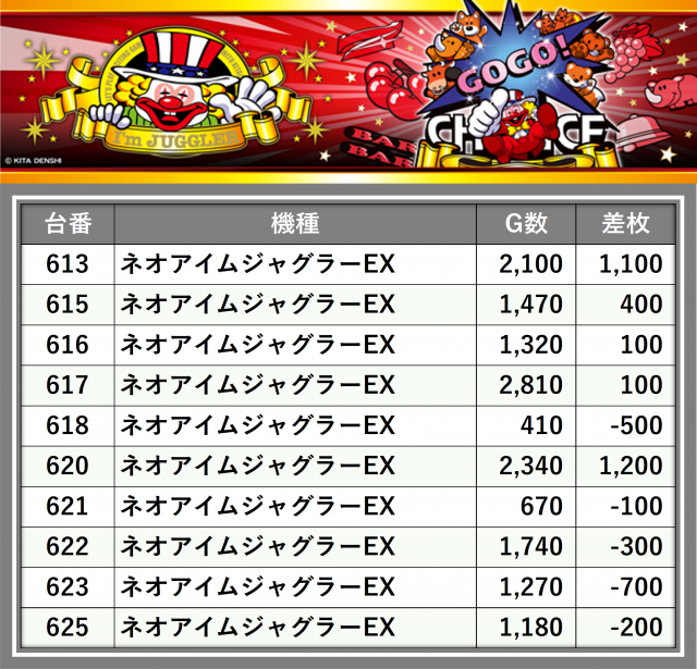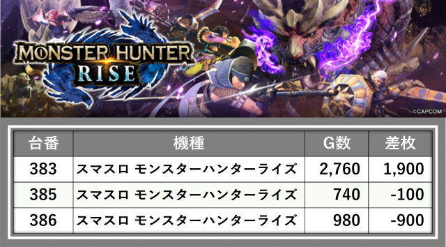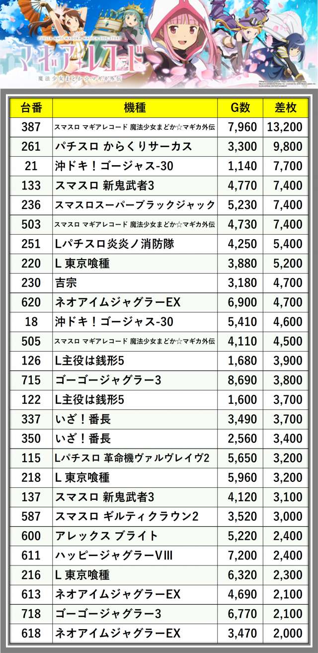 厳選された取材対象機種をはじめ、その他スロット全体から好記録が飛び出した!プレイヤーが楽しんだ1日を下記データにて振り返ってみて欲しい。
