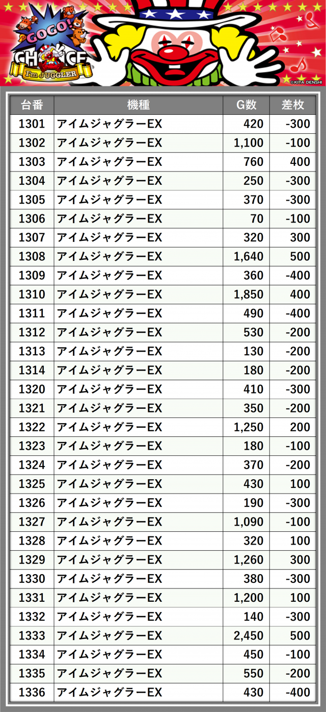 厳選された取材対象機種をはじめ、その他スロット全体から好記録が飛び出した!プレイヤーが楽しんだ1日を下記データにて振り返ってみて欲しい。