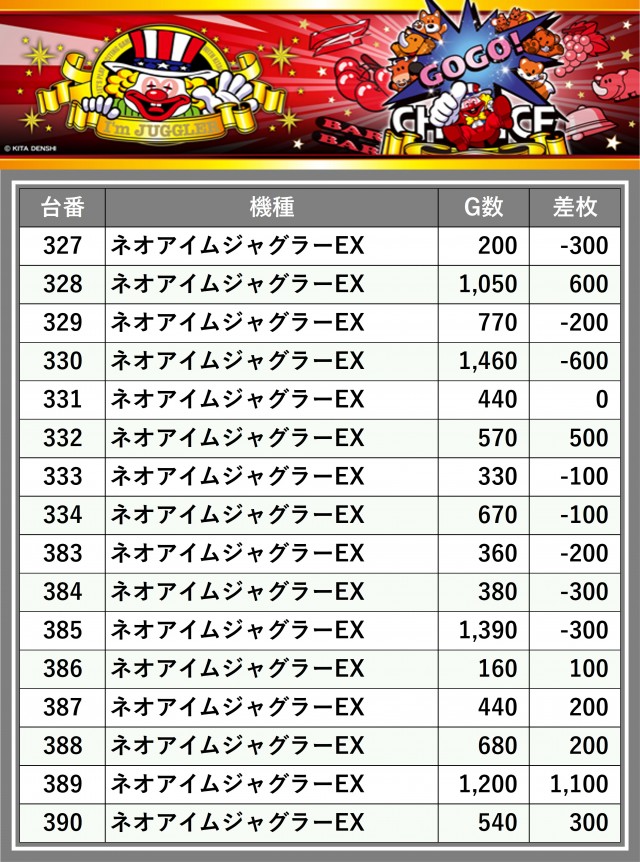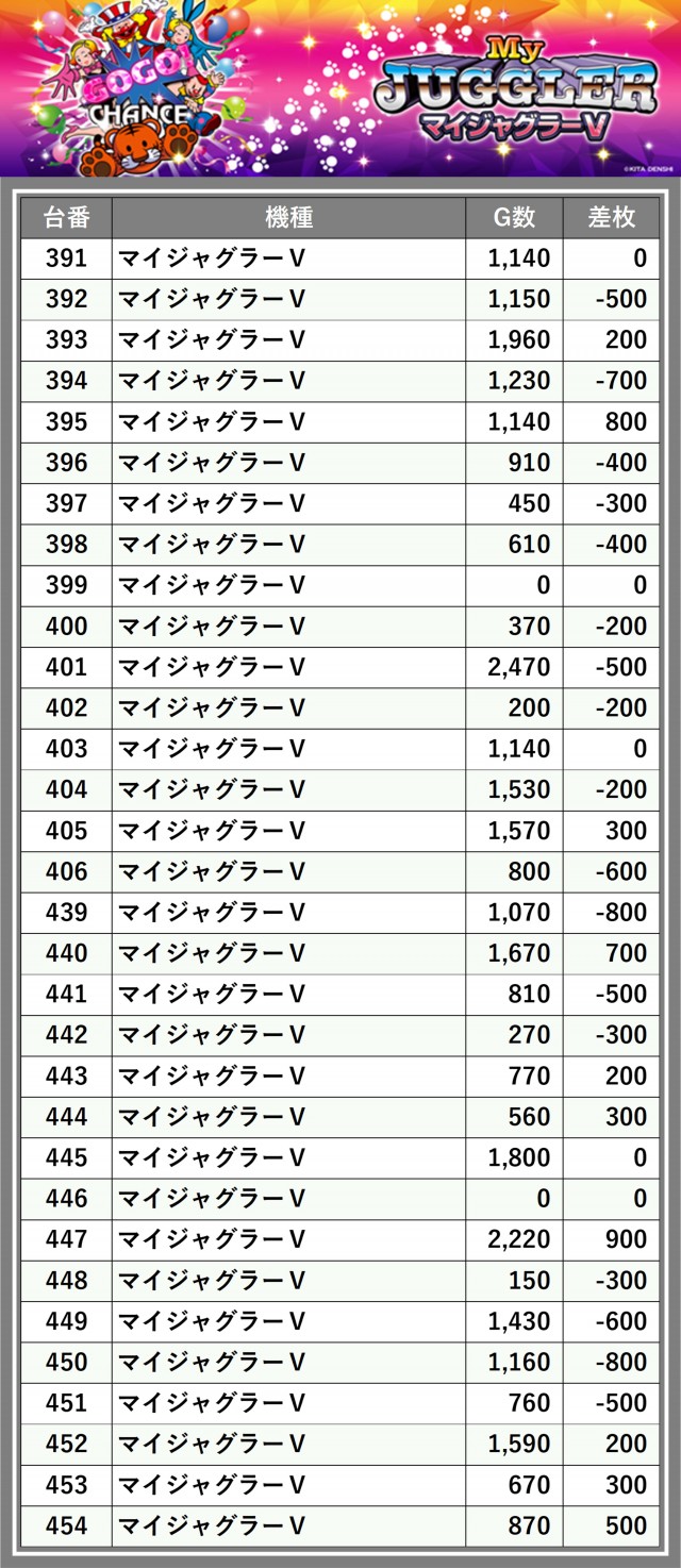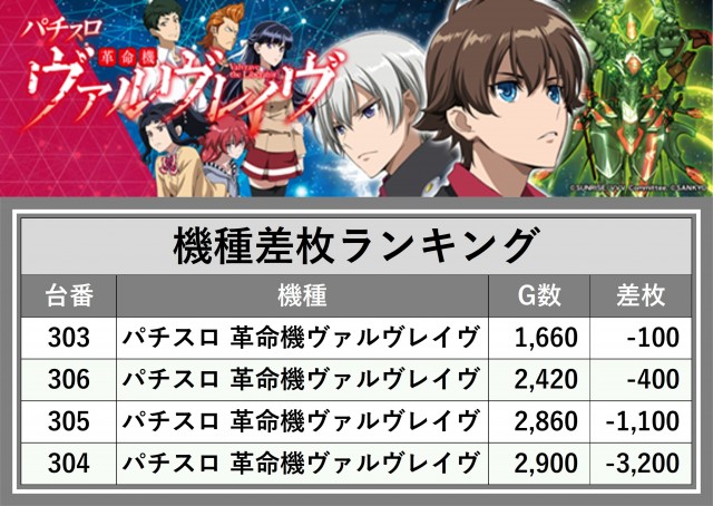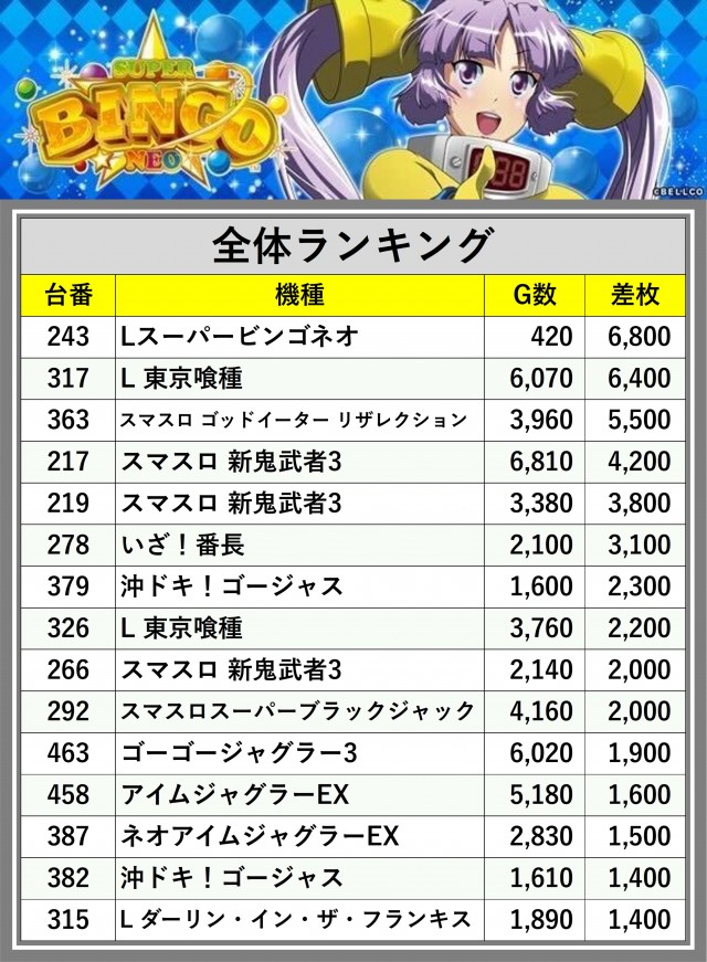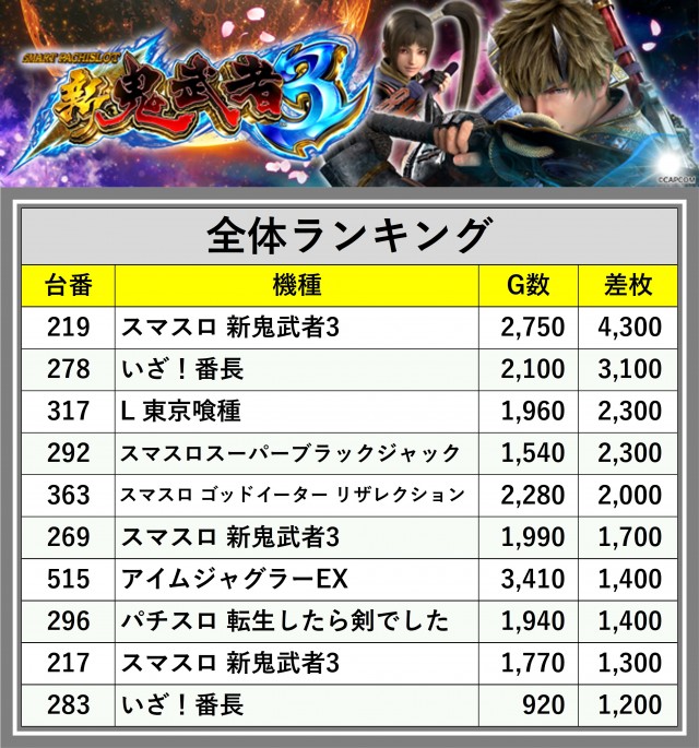 ※差枚数順に掲載しています