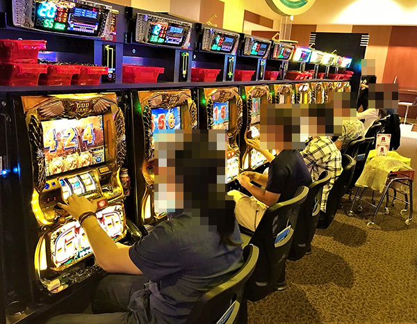 定番機種である海物語シリーズも活気づいており、笑顔のプレイヤーが多い。