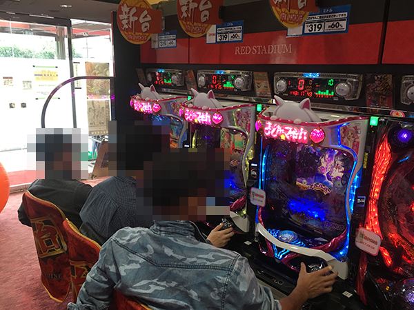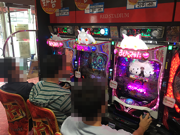 4円パチンコの「CRぱちんこ魔法少女まどか☆マギカ」も満席となるほどに注目度が高く、朝イチからにぎやかな雰囲気に包まれていた。