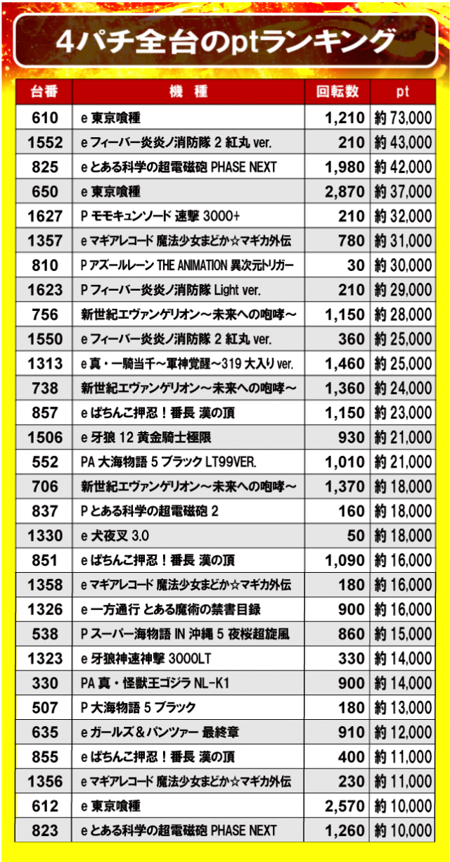 ②4パチ全台のptランキング