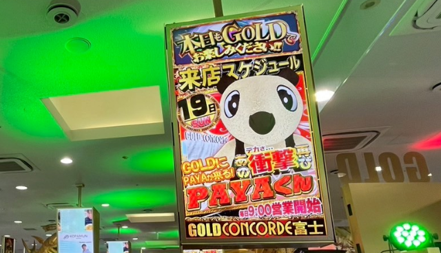10月19日、来店時には大きな盛り上がりをみせると噂のオリジナルキャラクター「PAYA」が『GOLD CONCORDE富士』に来店!前回は優秀台が多数誕生した結果を受け、今回はどのようなランキングが形成されたのか!?さっそく詳細データとともに、当日の内容をお伝えしていくぞ!