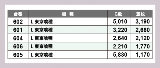 ※差枚数順に掲載しています