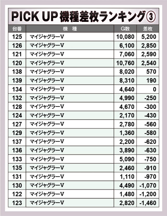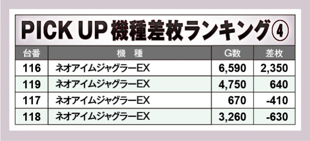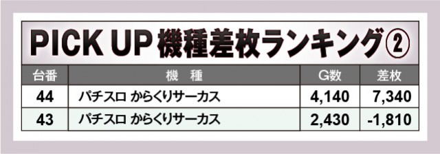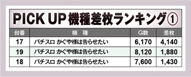 『パチスロ かぐや様は告らせたい』は全台プラス差枚数を達成しており、『パチスロ からくりサーカス』も7,340枚で大きく存在感をアピール。ポテンシャルを秘めた両AT機が盛り上がりを牽引し、そこに『マイジャグラーⅤ』『ネオアイムジャグラーEX』が安定したパフォーマンスで底上げしていた。右肩上がりのグラフを形成しては、ファンは口角を緩めていたのが何よりも目に焼きつくばかりだ。