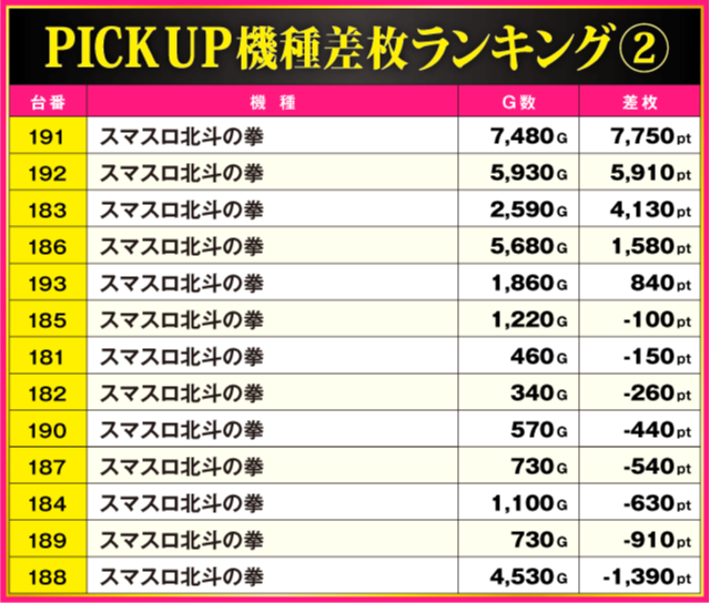 ※差枚pt順に掲載しています。