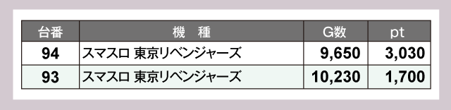 『スマスロスーパーブラックジャック』と『L 東京喰種』、『スマスロ 東京リベンジャーズ』はいずれの台も9,000G超えの終日フル回転。全台がプラスのうえに『スマスロスーパーブラックジャック』からは1万ptオーバーが飛びだすなど、圧倒的な存在感を放っていた。