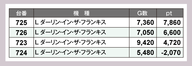 『L ダーリン・イン・ザ・フランキス』は終日、大盛り上がりで優秀台が3台も誕生。『L 東京喰種』からも強い熱気が感じられ、1万Gオーバーの台も飛びだしていた。