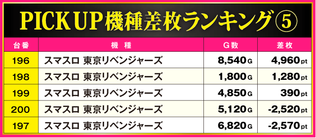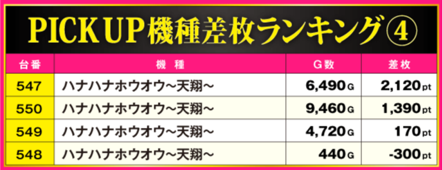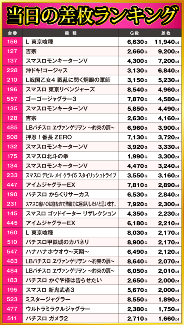 当日の差枚ランキング