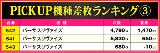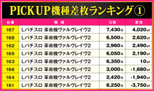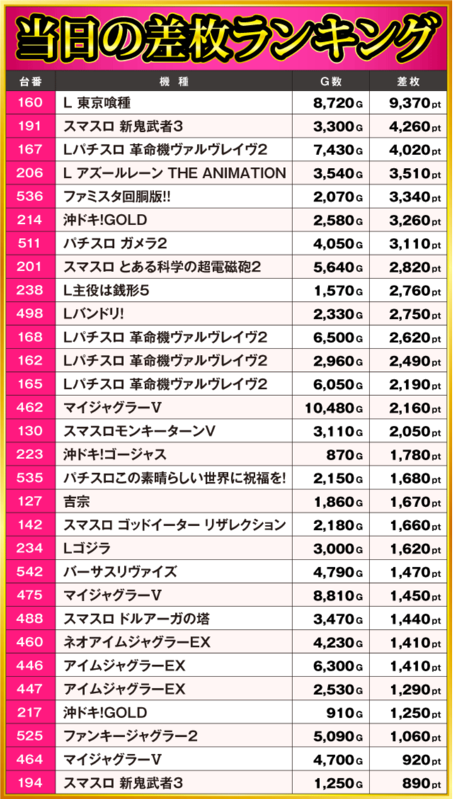 当日の差枚ランキング