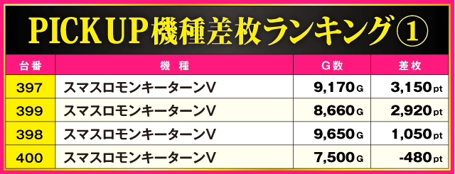 今回のPICK UP機種は差枚上位にランクインした3機種で、好成績を記録した台以外にも多数の好調台が確認されている。最終的に3機種トータルの全7台中6台がプラス差枚で実戦を終えているだけに、それぞれの機種のファンにとっては大満足の一日となったはずだ。