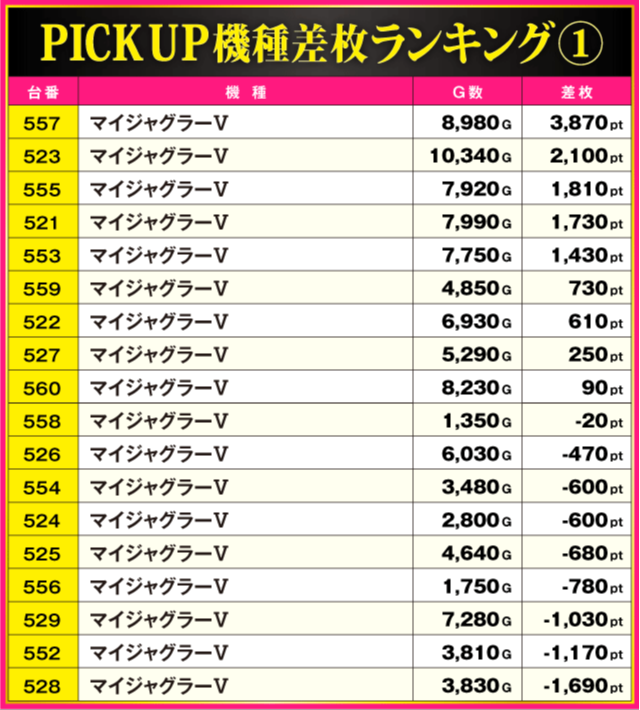 当日の差枚ランキング