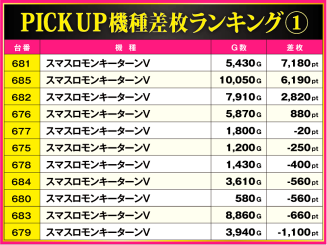 当日の差枚ランキング