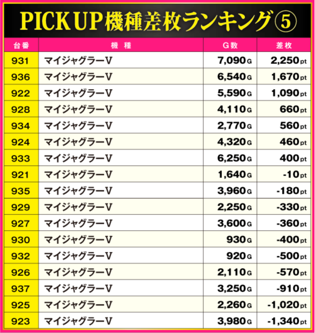 ※差枚pt順に掲載しています。
