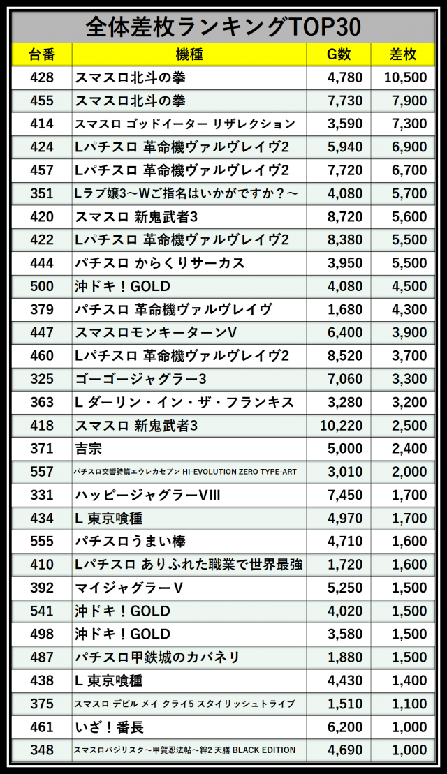 その結果の中から、ぱちタウンが注目すべきポイントを厳選してユーザーにお届け!プレイヤーが楽しんだ一日を下記データにて振り返ってみて欲しい。