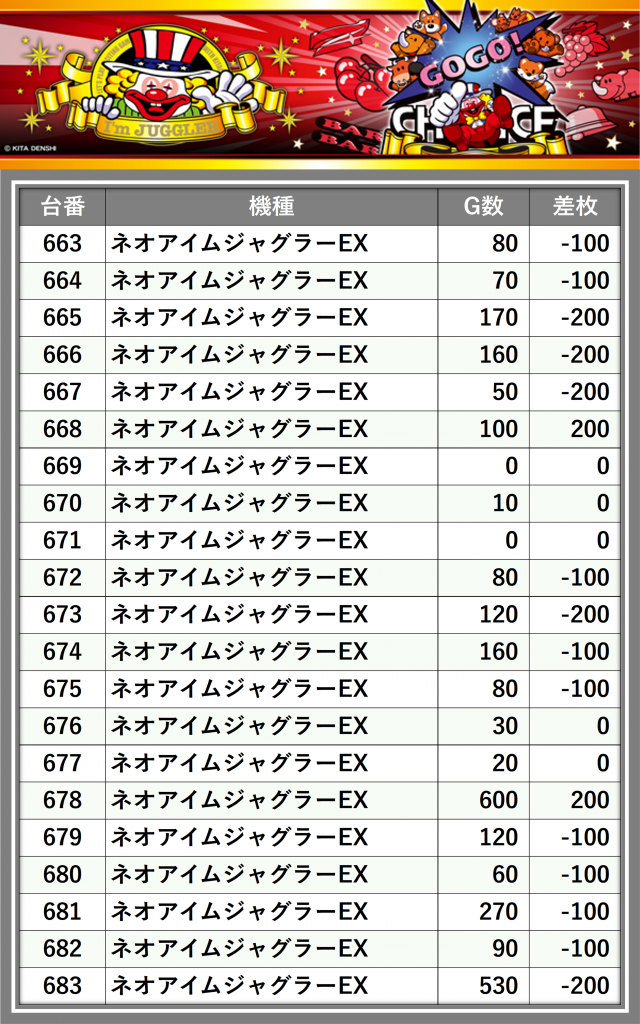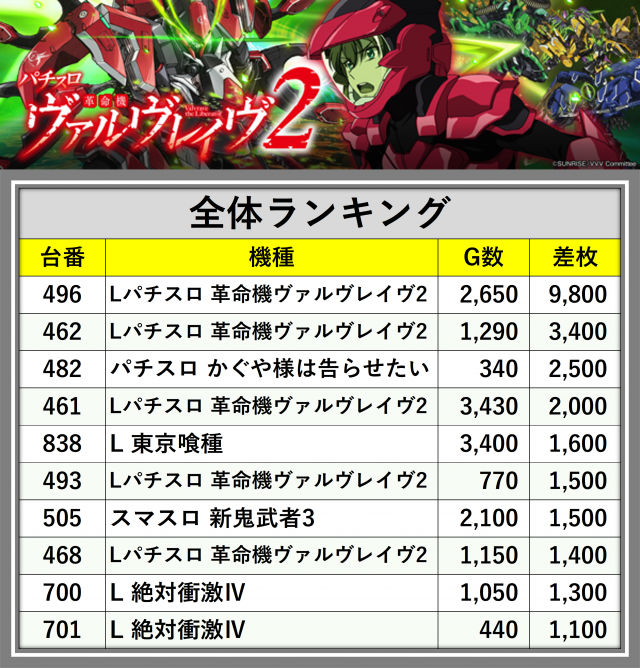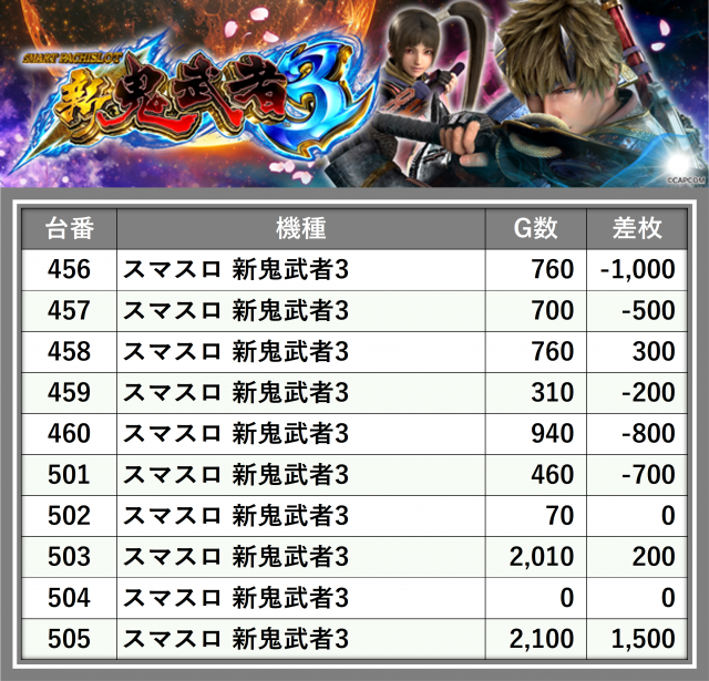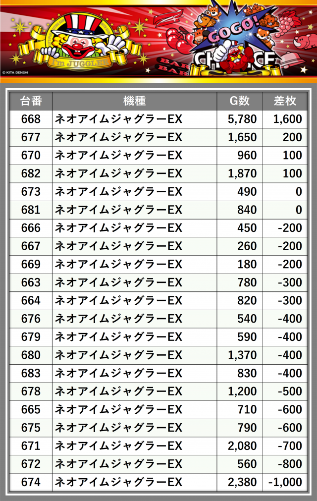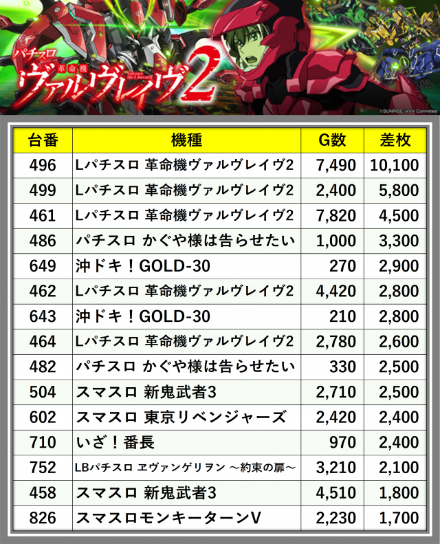 厳選された取材対象機種をはじめ、その他スロット全体から好記録が飛び出した!プレイヤーが楽しんだ1日を下記データにて振り返ってみて欲しい。