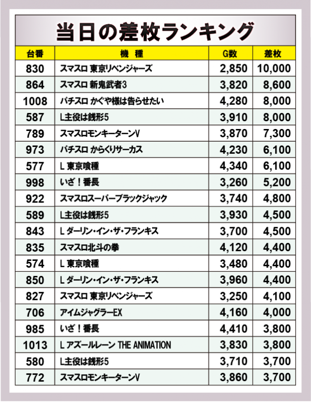 ※記事内の差枚表記はぱちタウン独自調査に基づくものです。ご了承ください。