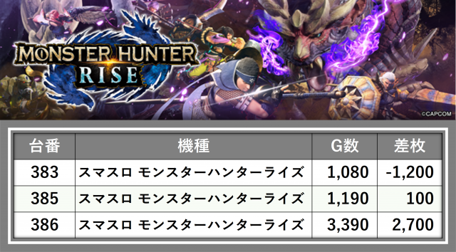厳選された取材対象機種をはじめ、その他スロット全体から好記録が飛び出した!プレイヤーが楽しんだ1日を下記データにて振り返ってみて欲しい。