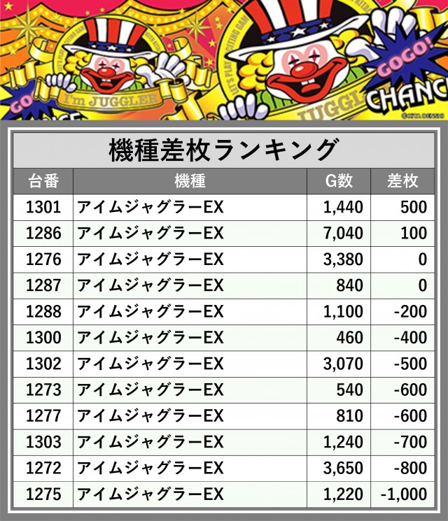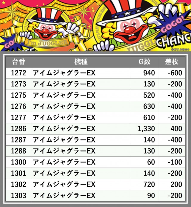 厳選された取材対象機種をはじめ、その他スロット全体から好記録が飛び出した!プレイヤーが楽しんだ1日を下記データにて振り返ってみて欲しい。