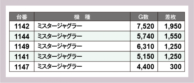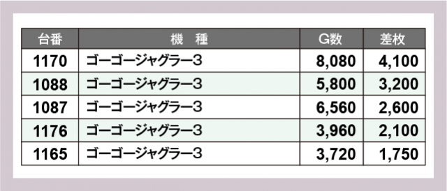 ※差枚数順に掲載しています