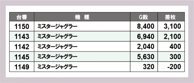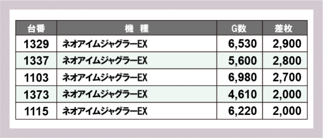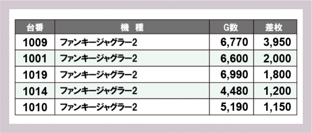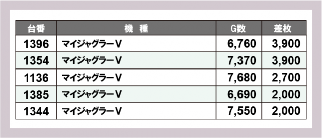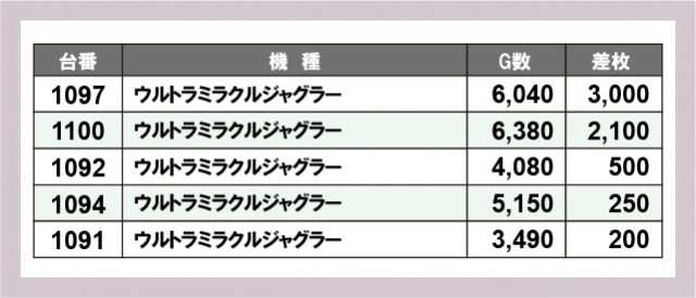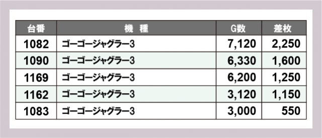 ※差枚数順に掲載しています