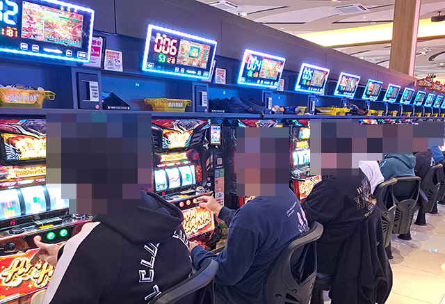 取材時のパチスロでは、「キングハナハナ-30」が満席となるほどに人気。